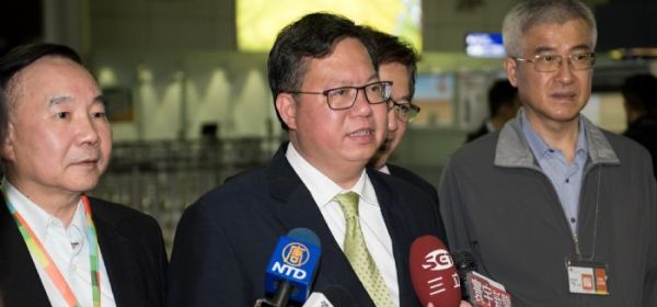 桃園市長鄭文燦5日下午前往桃園國際機場,歡迎平鎮高