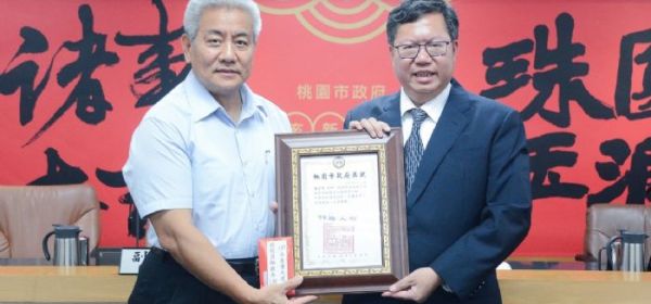 市長與教育局長高安邦合影 桃園市長鄭文燦3日上午主