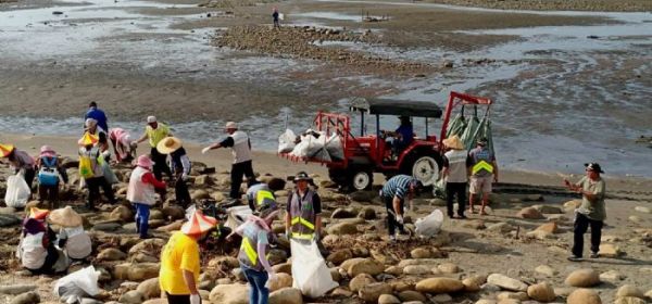 5月底因連續大雨,致使桃園市新街溪出海口許多舊布料