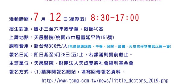 暑假到了!中壢天晟醫院小小華陀營將於7/12(五)